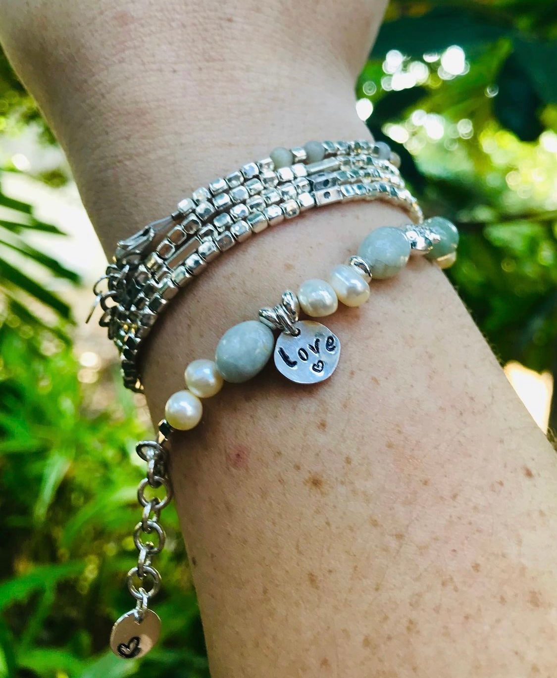 This unique bracelets were custom made for a beautiful client with hand stamped 925 silver charms and a handmade bracelet.