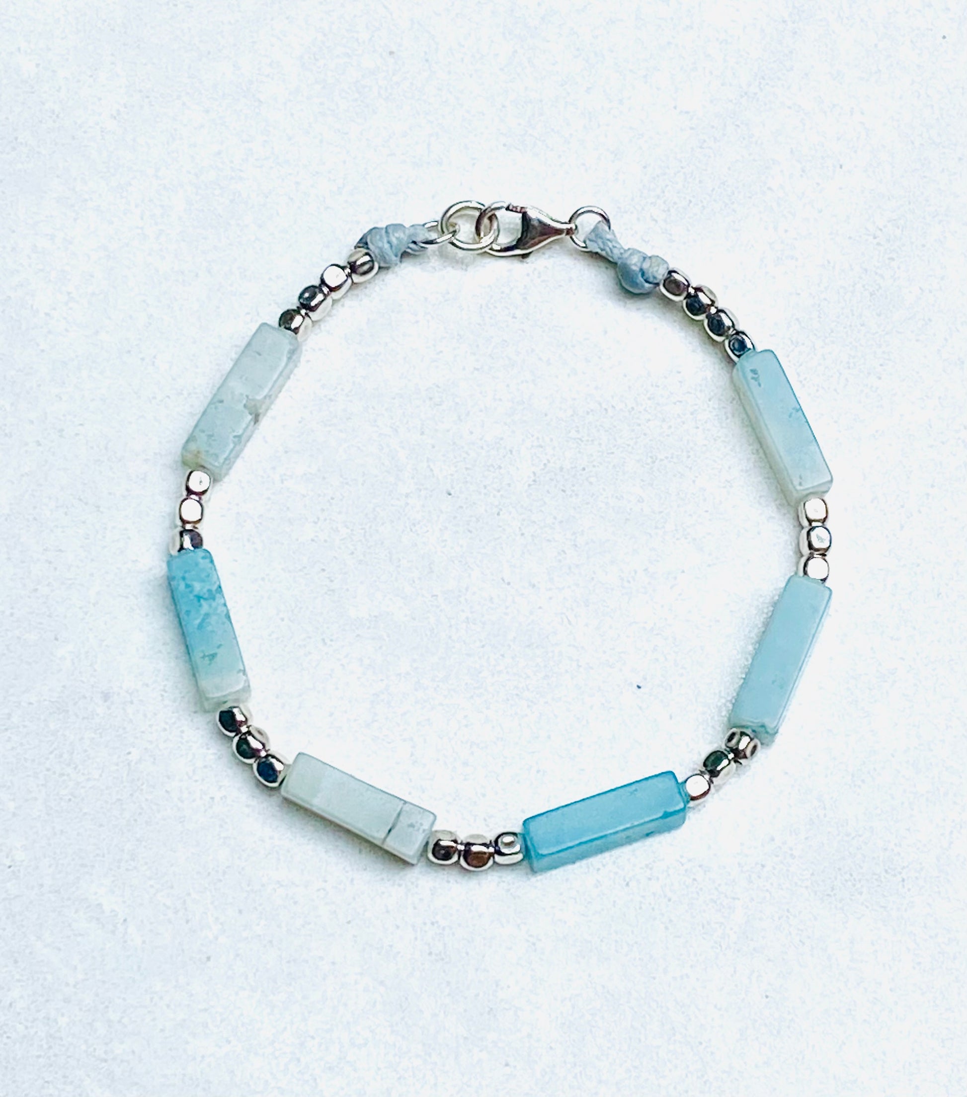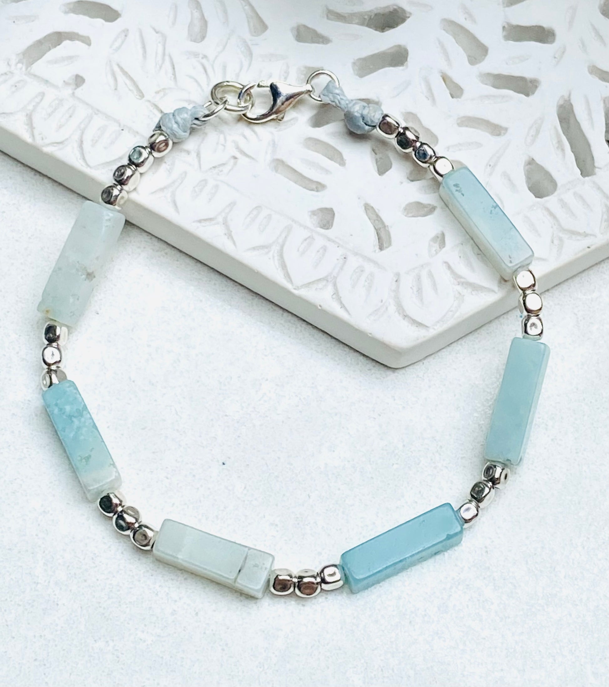 Designed to stand out, this gorgeous bracelet has been handmade with Amazonite stones and our signature 925 Italian silver beads, threaded onto quality and durable cord.