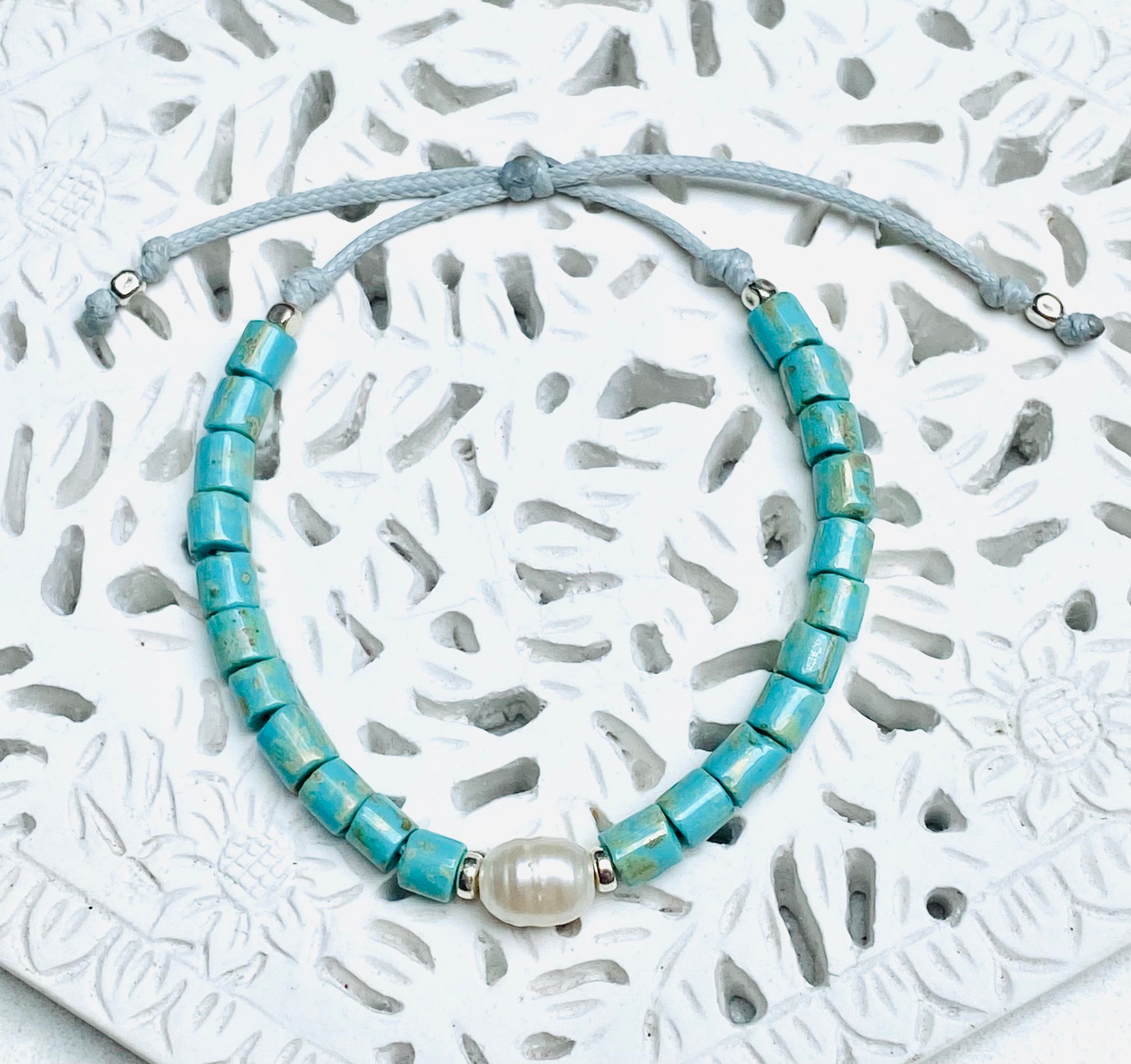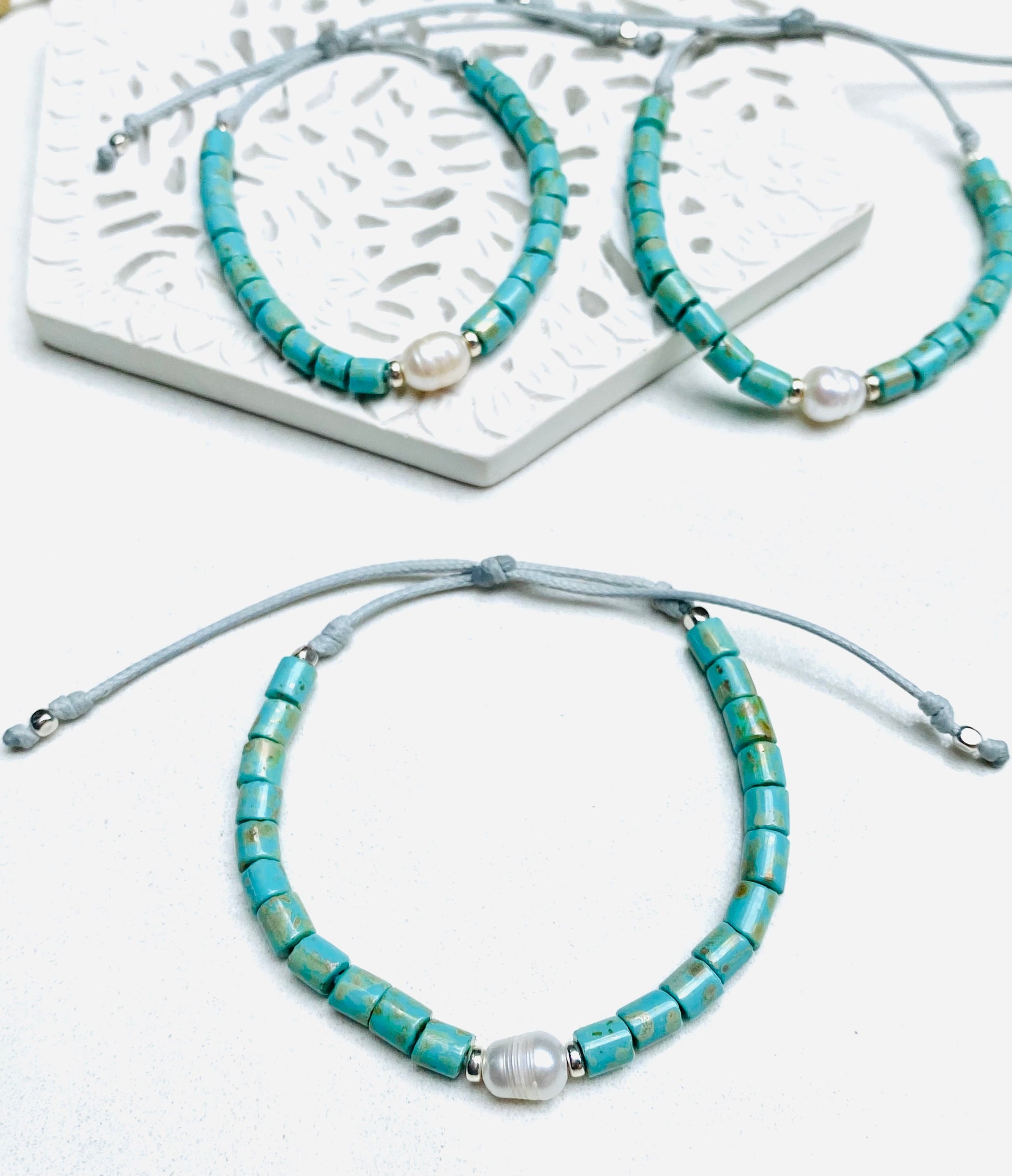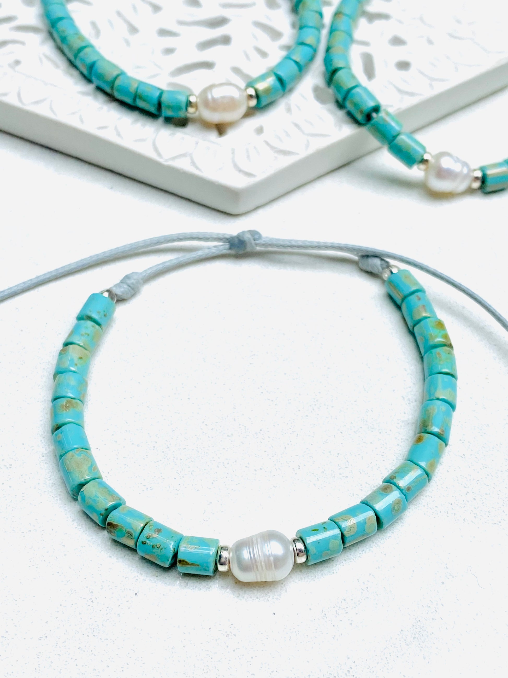 Designed to stand out, this gorgeous bracelet has been handmade with Czech beads, our signature 925 Italian silver beads, finished with a fresh water pearl and threaded onto quality and durable cord.