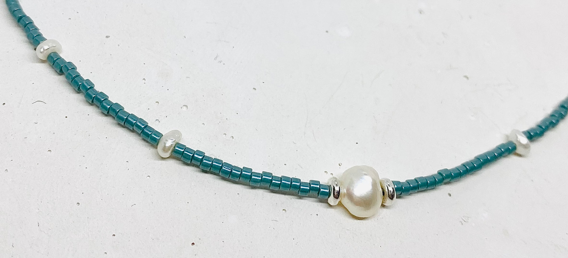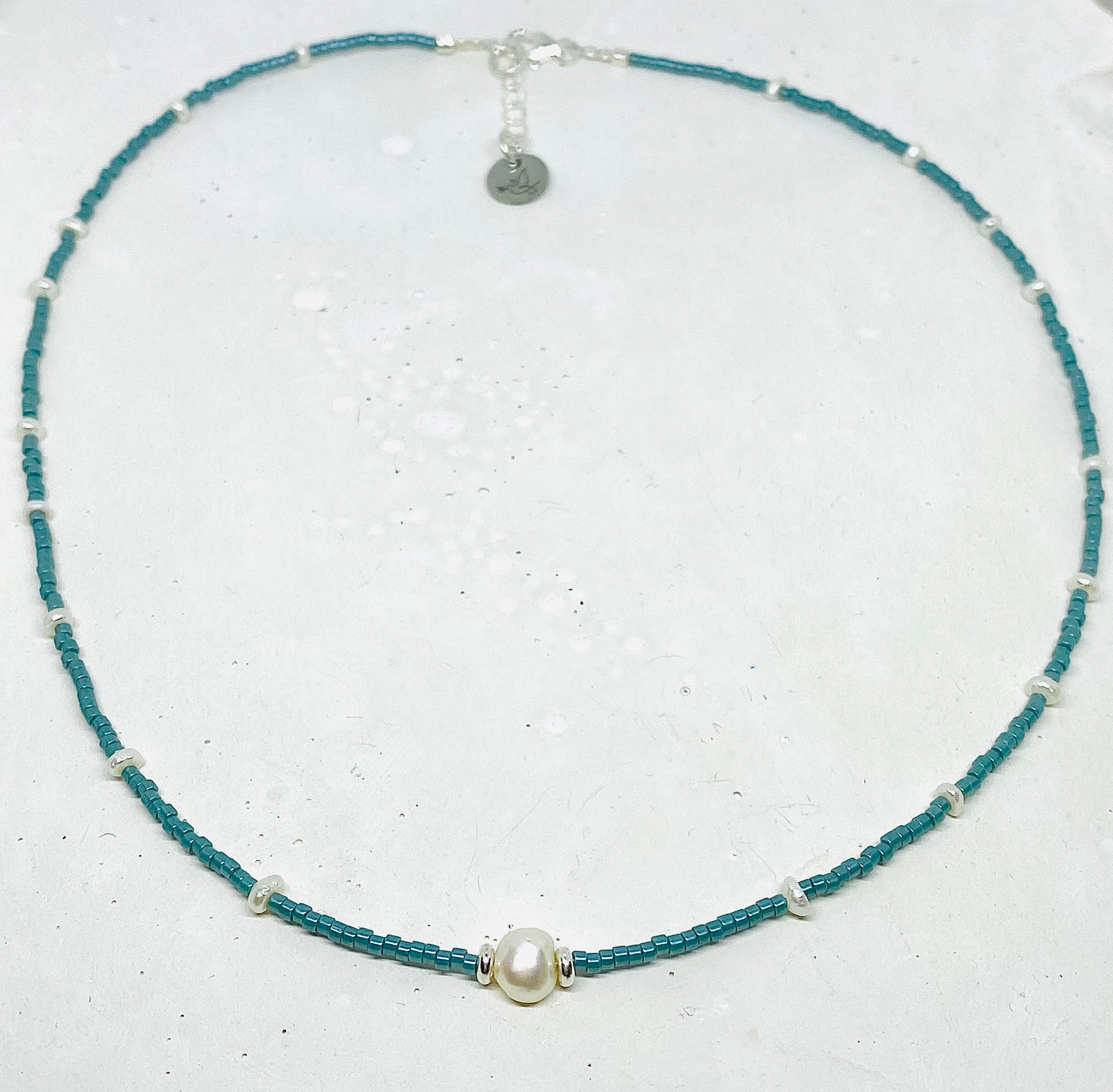 Unique handcrafted chocker made with Picasso style Czech beads and our signature solid 925 Italian silver, finished with gorgeous freshwater pearls.