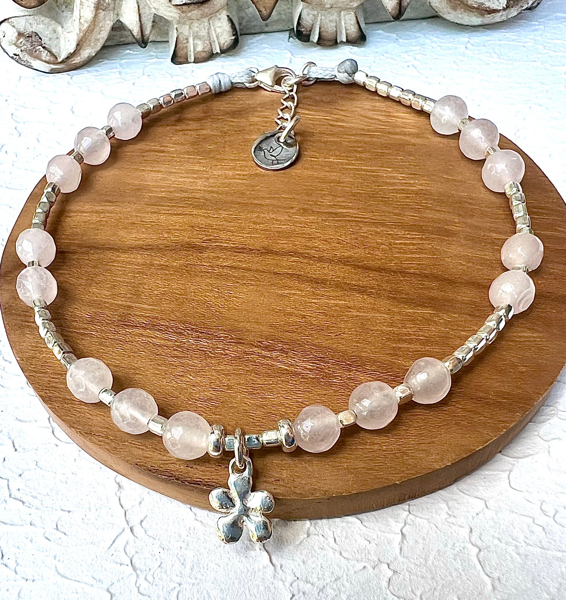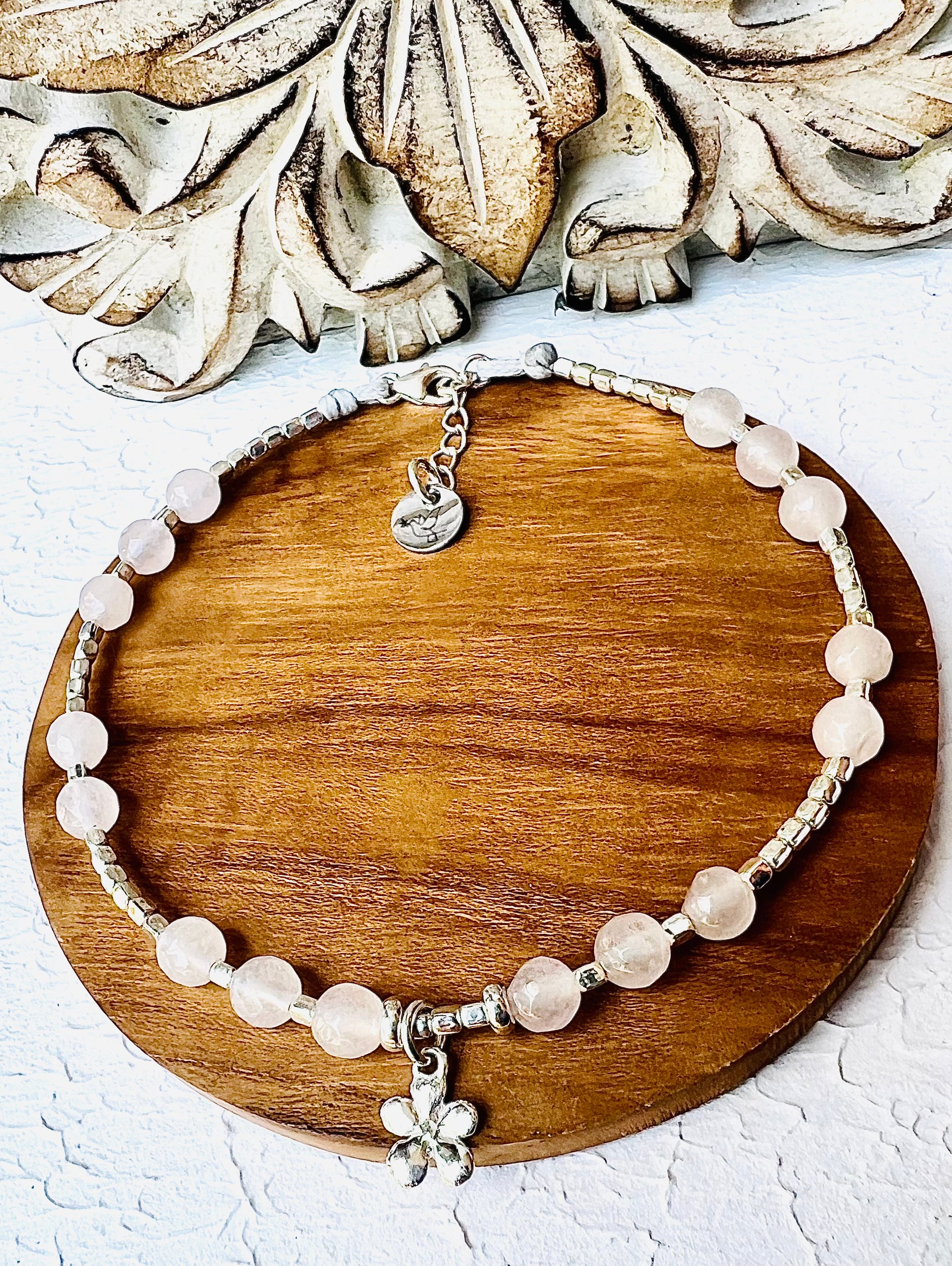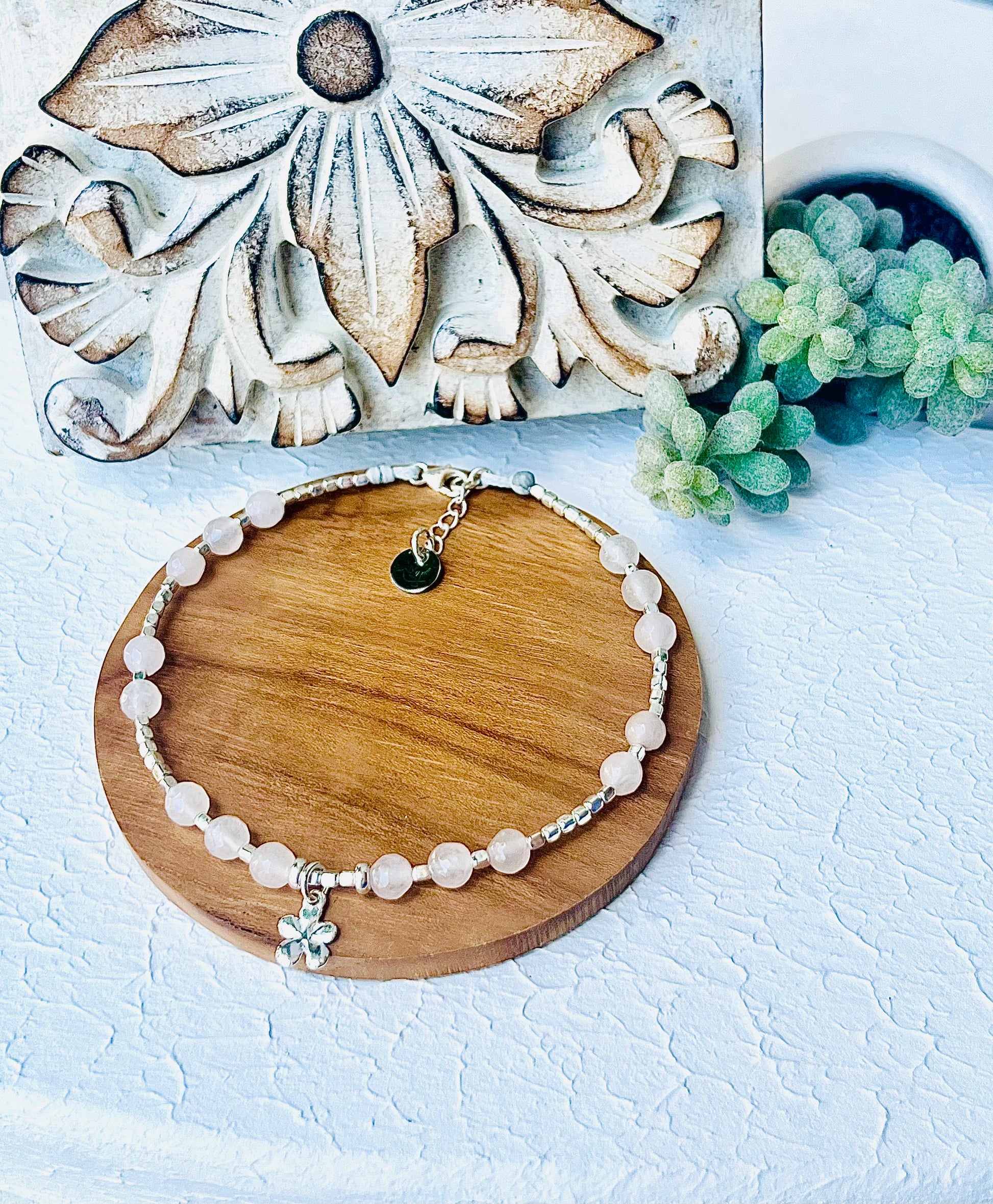 Stunning anklet handmade with 925 solid Italian silver, pink quartz and finished with a beautiful silver flower.