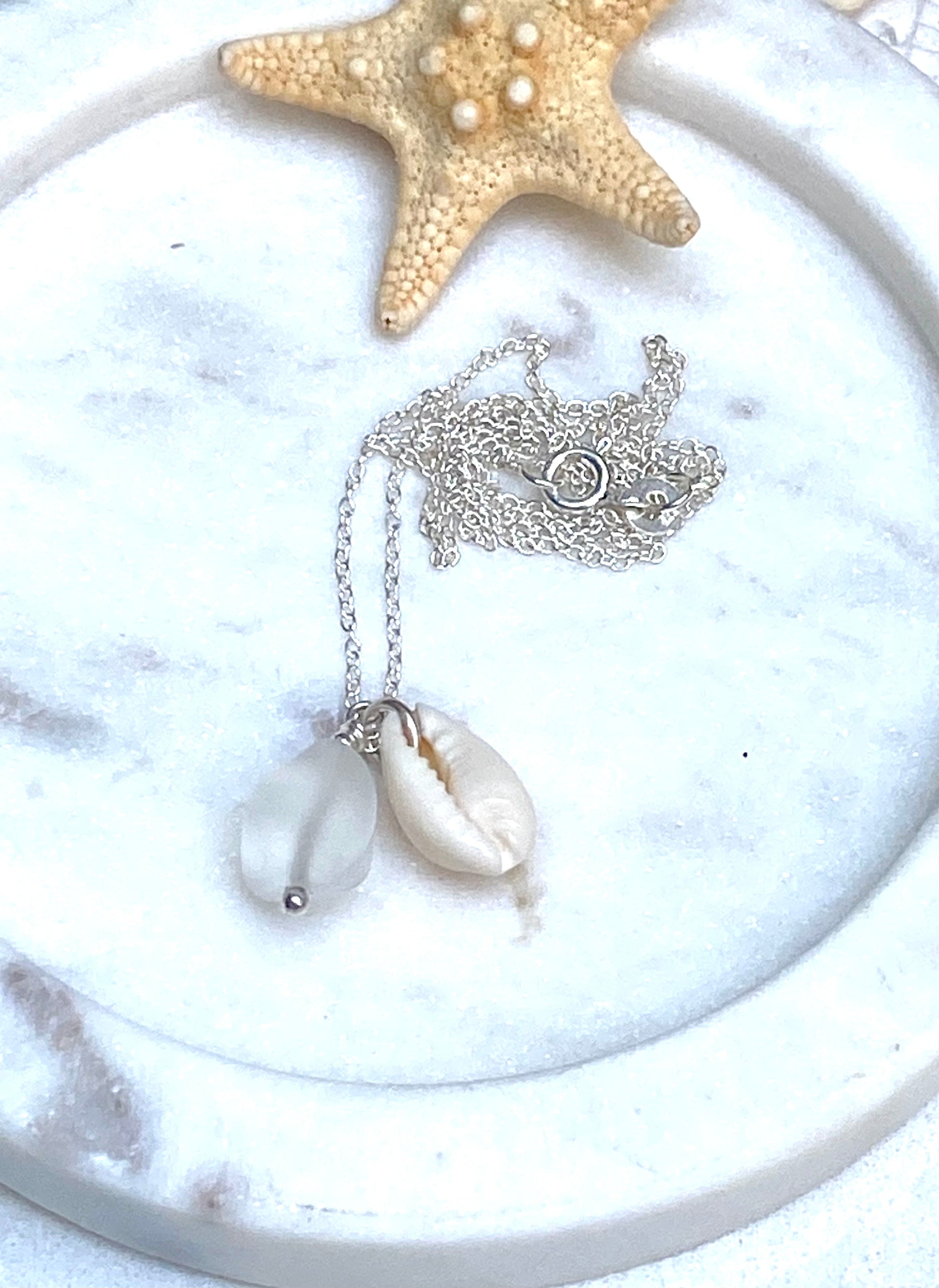 SEA GLASS AND COWRIE SHELL NECKLACE